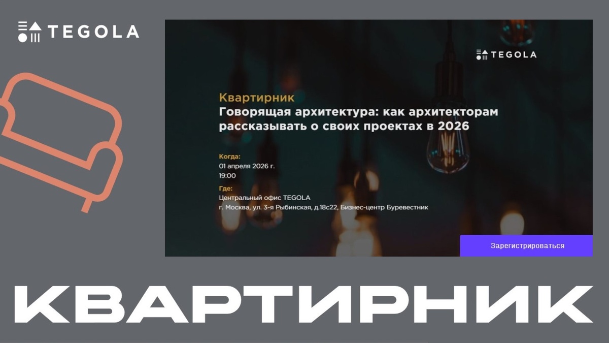 1 апреля в московском офисе – творческом пространстве TEGOLA пройдёт камерный квартирник «Говорящая архитектура». На этот раз архитекторы узнают, как грамотно презентовать свои проекты в СМИ и соцсетях, формулировать смыслы и избегать типичных ошибок в коммуникации с медиа. В программе — выступления экспертов, разбор кейсов и неформальное общение с фуршетом. TEGOLA Group приглашает архитекторов на очередной квартирник «Говорящая архитектура», который состоится 1 апреля (среда) в 19:00 в московском офисе компании по адресу 3‑я Рыбинская ул., 18с22. «Как архитекторам рассказывать о своих проектах в 2026 году» - станет темой ближайшей встречи. В эпоху, когда образ в медиа становится первой точкой входа к заказчику, умение выстраивать коммуникацию с журналистами и аудиторией напрямую влияет на успех в профессии. Участники вместе с экспертами обсудят вопросы: «Мы часто говорим о том, как строить, а тут поговорим о том, как рассказывать, потому что образ в медиа — это первая точка входа к за