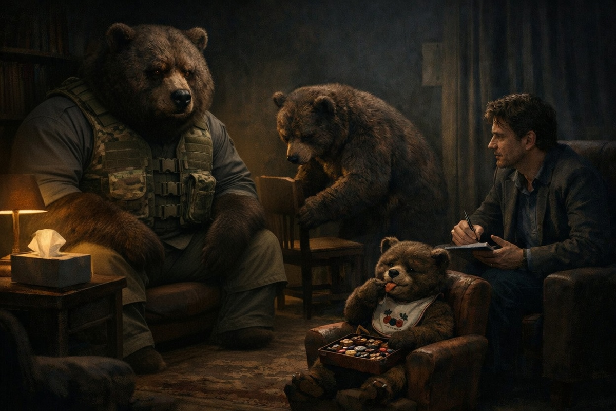 -Это люди, - сказал себе психолог. - В костюмах медведей.