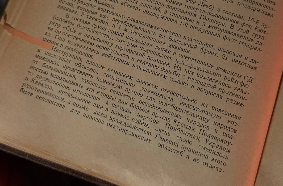 Это издание «Мировая война 1939–1945», написанное группой генералов и офицеров бывшего немецко-фашистского вермахта. Немцы освещают подготовку и ведение боевых действий сухопутными войсками, авиацией и военно-морским флотом гитлеровской Германии, а также её союзников во Второй мировой войне, причём делают это в традиционном ключе буржуазной немецкой военной политики и стратегии. Особый раздел посвящён войне с Россией. Он изложен со слов немецкого генерал-майора фон Бутлара. Даже тогда, в годы фашизма, он высоко оценивал качества русского солдата. Дисциплину, способность действовать, не обращая внимания на огонь противника и собственные потери, стойкость в перенесении лишений и готовность к тяготам войны — всё это, вне всякого сомнения, было на высочайшем уровне. Для немцев оставалось лишь загадкой, какое влияние окажут крупные военные неудачи на сплочённость и боевой дух русских войск. Надо прямо сказать, что в этом отношении немецкие военные круги не питали особых надежд. История пок
