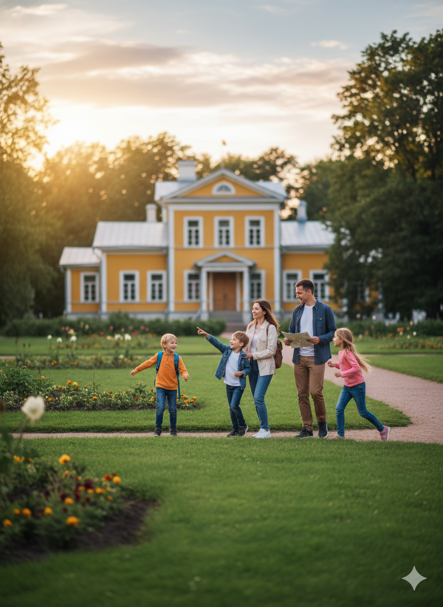 В доме сохранились гостиная с роялем, кабинет и другие комнаты — экскурсия проходит по живому пространству, а не по музейным витринам. На территории — старинный парк для прогулок и концертный зал, где регулярно звучит живая музыка. В детском центре музея проводятся интерактивные занятия для школьников — дети угадывают мелодии и мастерят поделки по мотивам балетов.