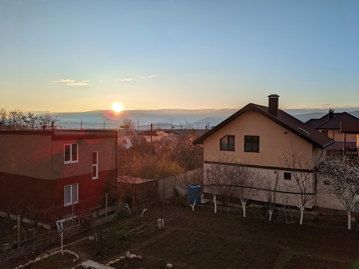 Утро было ранним и красочным, встретили восход солнца.