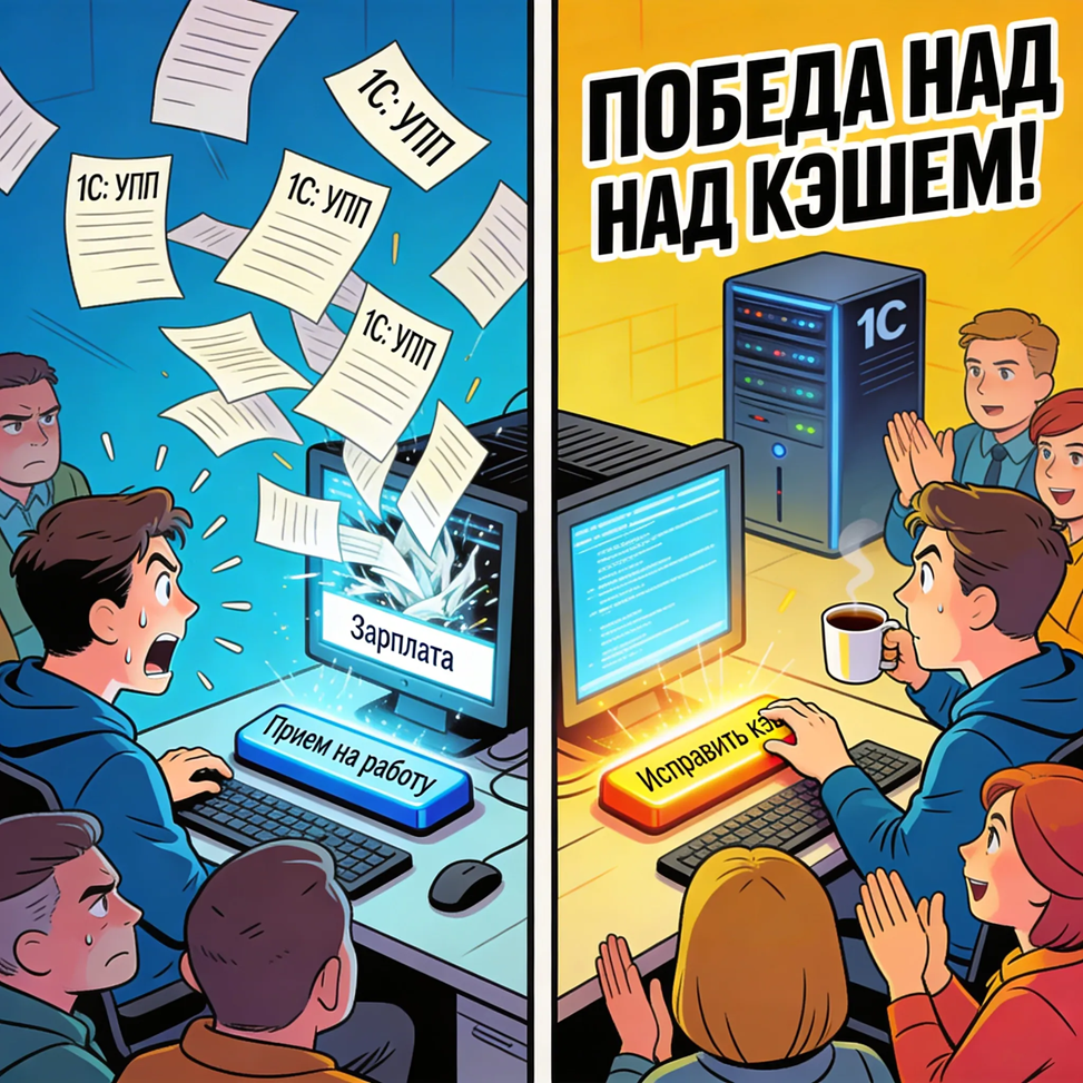 К сожалению, с момента описываемых событий прошло много лет, поэтому скриншоты и подробная техническая информация не сохранились. Тем не менее, сам кейс показателен с точки зрения сопровождения типовых решений 1С. В тот период мы обслуживали конфигурацию УПП (Управление производственным предприятием, редакция 1.3). Платформа 1С:Предприятие 8.3 только начинала появляться в эксплуатации. Информационная база была большой, поэтому обновления конфигурации мы выполняли либо ночью, либо рано утром, пока пользователи не начали работу. Однажды рано утром один из специалистов выполнял обновление конфигурации на сервере. Обновление завершилось без ошибок, каких‑либо предупреждений платформа не выдала. Однако примерно через 30 минут начали поступать звонки от пользователей: • при открытии документа «Начисление заработной платы организации» открывался «Кадровый перевод»; • при открытии документа «Прием на работу» открывалось «Начисление заработной платы». Предварительный вывод: ссылки на объекты ко