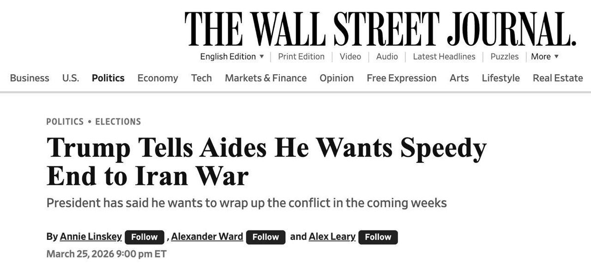 📰The Wall Street Journal: Трамп сказал советникам, что по итогам войны с Ираном хочет получить доступ к части его нефти