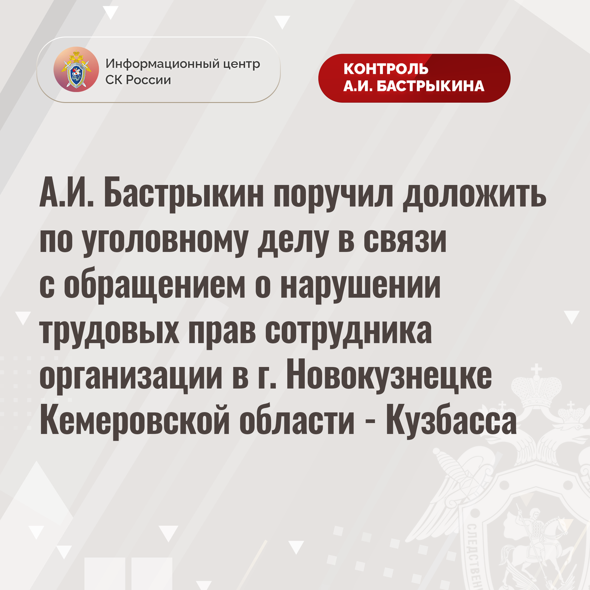 А.И. Бастрыкин поручил доложить по уголовному делу в связи с обращением о нарушении трудовых прав сотрудника организации в г. Новокузнецке