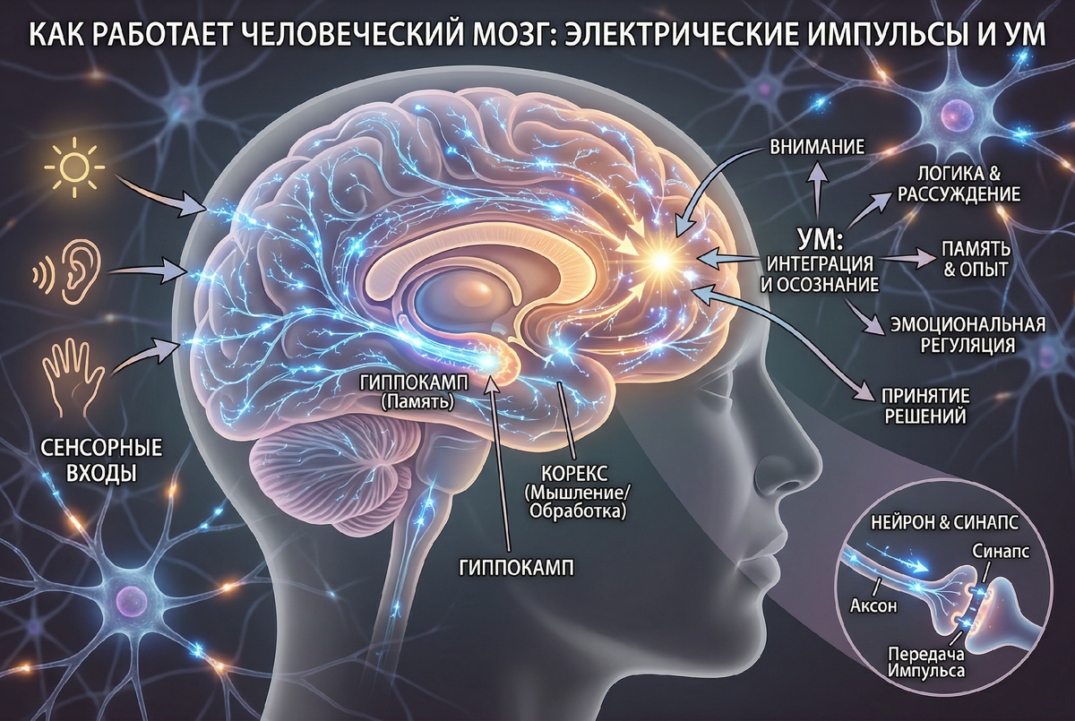 В процессе перехода от ума к сознанию определимся, что такое ум. 🔹 Ум – это умение мыслить, это некая операционная система или система координат, существующая на базе различных кодов, которая применяется для обработки информации в этой реальности с целью её дальнейшего использования в ней. [Основные определения на сайте школы Сорадение] 🔹 То есть ум – это операционная система, которая может создавать только неживые объекты - стол, стул и тому подобное. А живой дом, например, он сделать не может, на это способен только разум… 🔹 Если из этого смысла [разум] убрать свет [Ра], то получится ум. А «З» - как зело, то есть неизвестно как свет проявится, как его направит ум, какая мыслеформа возникнет. Если остаётся ум как логическое завершение процесса, в котором отсутствует смысл и животворение, то есть свет и направление этого света, то мы придём к флешке и к механическому расходованию ресурса, которое не ведёт к продолжению жизни, к чему сейчас и приводят людей. То есть человек всё больш