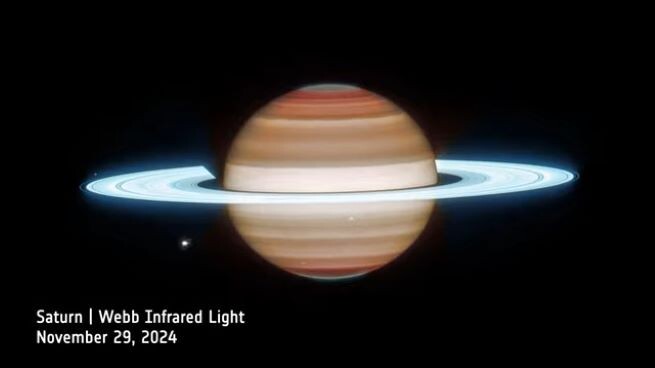 Космические телескопы «Хаббл» (Hubble Space Telescope) и «Джеймс Уэбб» (James Webb Space Telescope) обычно наблюдают за далекими галактиками. Но два новых изображения предлагают свежий взгляд на планету в нашей Солнечной системе: Сатурн. Основное внимание было уделено атмосфере гигантской газовой планеты. Как правило, ИК-диапазон показывает температуру поверхности и атмосферы. Новые изображения раскрывают состав и движение атмосферы. Изображение Уэбба. Источник: Youtube-канал HubbleWebbESA Изображение Хаббла. Источник: Youtube-канал HubbleWebbESAФотографии «Хаббл» были сделаны в августе 2024 года и являются частью программы Outer Planet Atmosphere Legacy (OPAL). Хотя различия в цвете здесь менее выражены, чем на снимке «Уэбб», видны штормы и погодные явления. Телескоп им. Джеймса Уэбба сфотографировал Сатурн в ноябре 2024 года. На изображении видна струйная волна, известная как «ленточная волна». Она видна в центре северного полушария. Также видны несколько штормов, которые выглядят ка