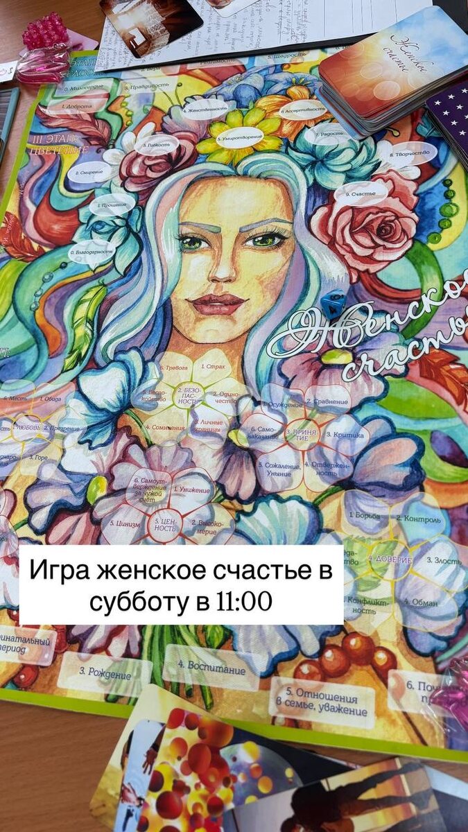 ? Знаешь, в чем кайф игры «Женское счастье»? Сюда можно прийти с любым запросом. Хочешь разобраться с реализацией и деньгами? 🤝 Хочешь наладить личную жизнь? 💕 Мы просто берем картинку и метафорические карты, смотрим на них... и вдруг ты видишь то, что раньше прятала даже от себя. ✔️ Твои скрытые ограничения, которые тянут назад. ✔️ Твои скрытые ресурсы, которые выведут на результат. Приходи узнать себя настоящую. Уже в эту субботу в 11:00 на игру «Женское счастье». 💰 Стоимость участия: всего 1000 руб. Не думай, просто приходи. Будет твой личный инсайд. Для записи на игру пиши в личные сообщения @anastassia_mak_lila игра .