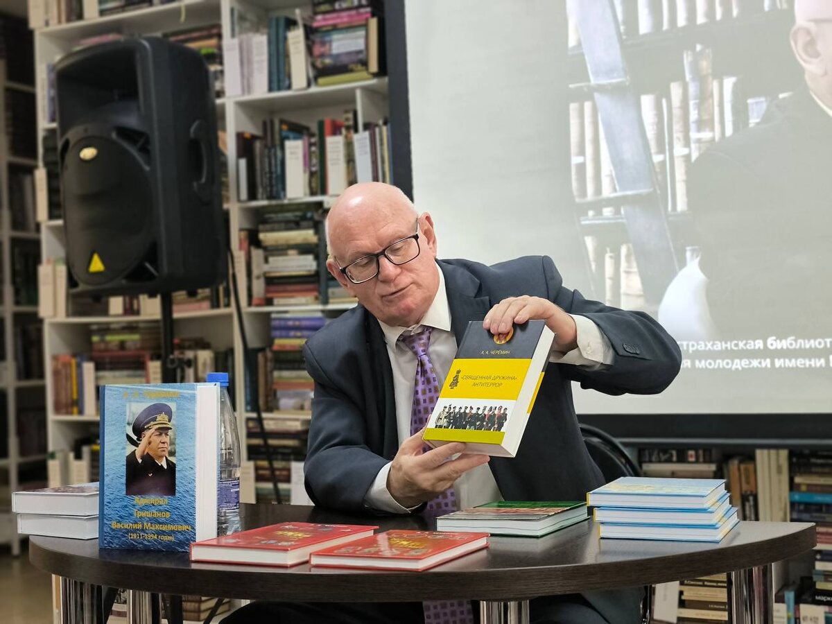 работ. В рамках встречи он представил свою новую книгу «Адмирал Гришанов Василий Максимович (1911–1994 годы)», основанную на ранее не изучавшихся исторических источниках. Автор рассказал о судьбе адмирала на фоне масштабных событий истории военного флота на Нижней Волге, а также поделился интересными фактами и тонкостями своей исследовательской работы. Слушать было невероятно интересно — уверены, читать будет не менее захватывающе! Особенно приятно, что в фонд нашей библиотеки скоро поступят две монографии автора: история Астраханского ханства, а также работа, посвящённая городу Сарай-Берке, который был столицей Золотой Орды с начала XIV до XV вв. Источник: https://vk.ru/wall170161775_11944