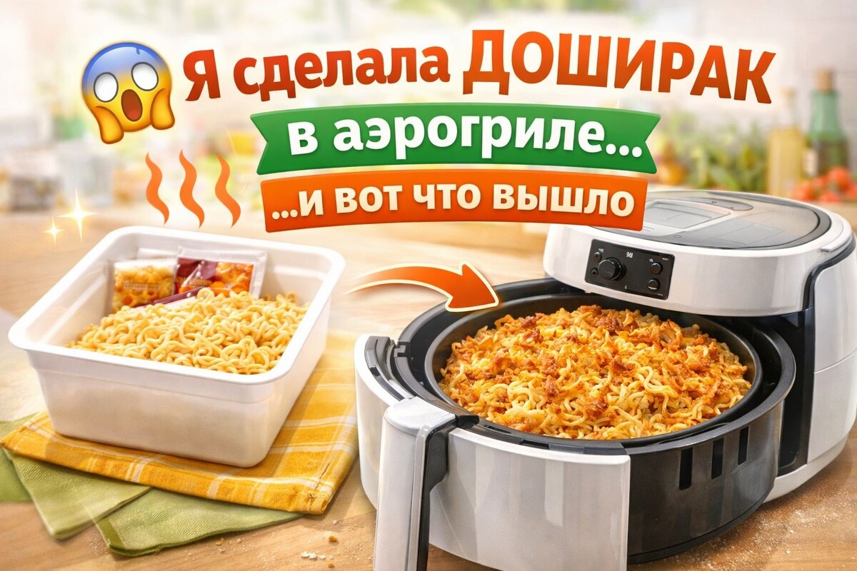 • либо сухим (все так делали, не отнекивайся 😄) А у меня уже есть аэрогриль, и я в нём готовлю почти всё. И тут щёлкнуло: 👉 «Он же делает корочку… а что будет с лапшой?» ⸻ 🔥 Как я это сделала Без сложностей, максимально лениво: