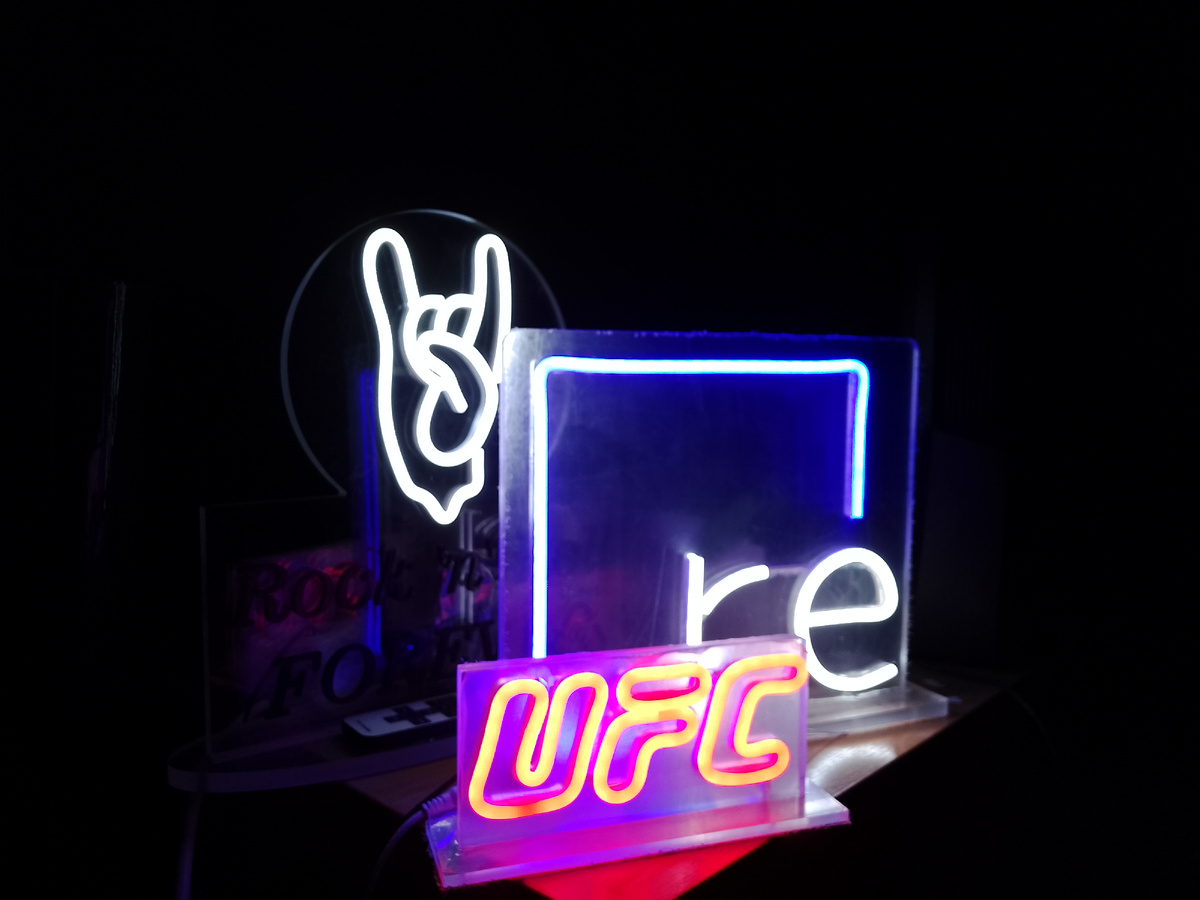Стеклянный неон можно согнуть только в одной плоскости с большим радиусом. Пластиковый короб — это вообще жесткая конструкция, чаще всего прямоугольная.