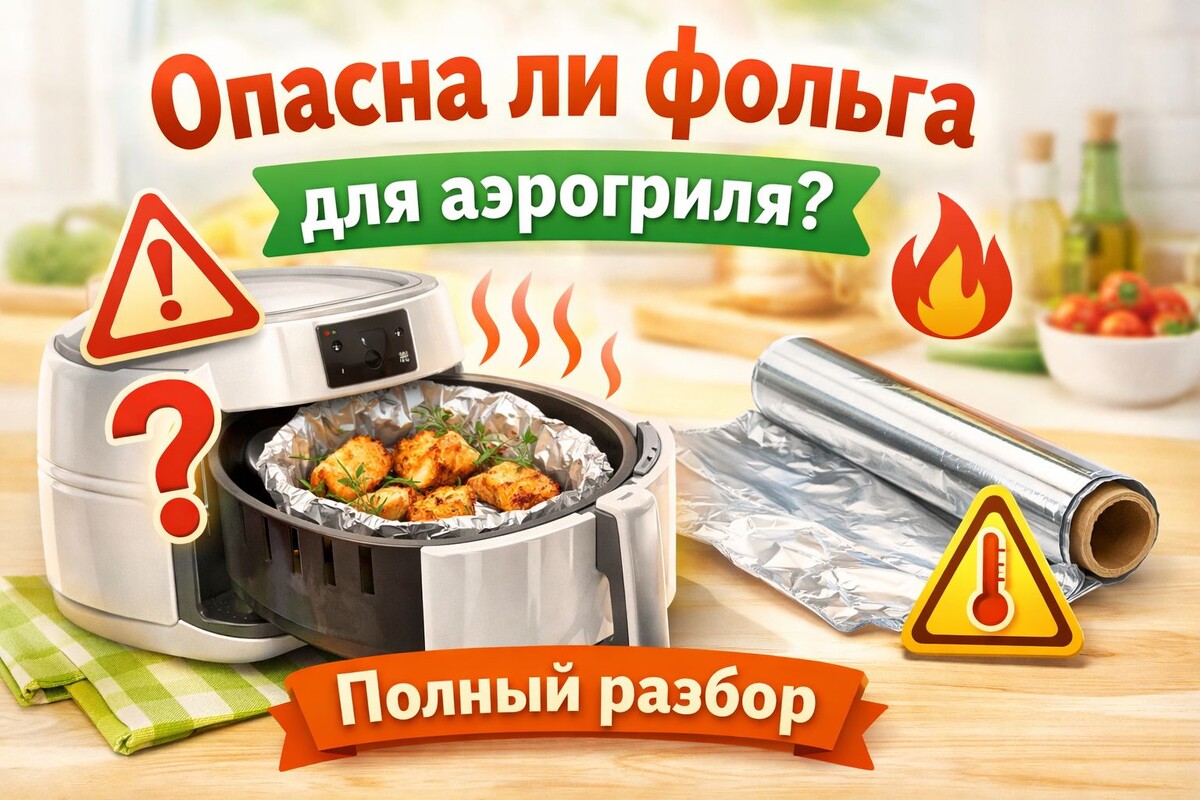 • за счёт этого еда равномерно готовится и становится хрустящей. 👉 Поэтому главное условие — свободная циркуляция воздуха. Если её нарушить — начинаются проблемы. ⸻ Можно ли использовать фольгу в аэрогриле Короткий ответ: 👉 Да, но с ограничениями. Фольга сама по себе не опасна, но неправильное использование может: