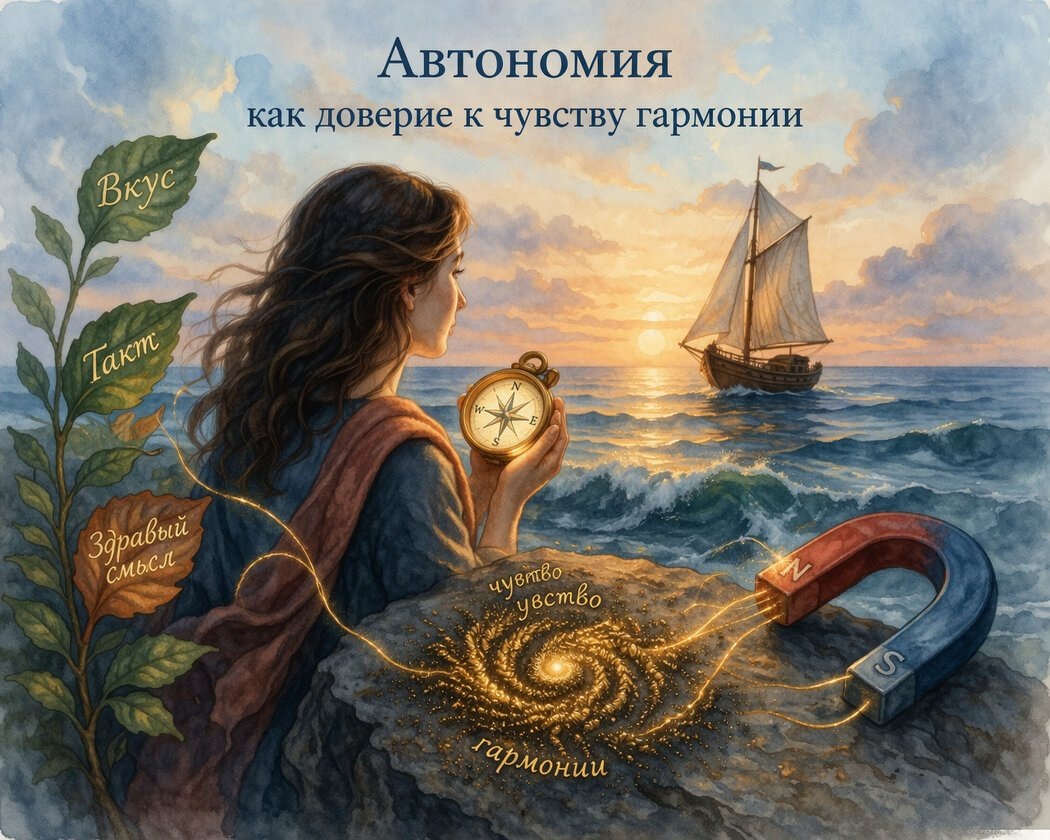 Это и есть чувство гармонии. И автономия — это способность доверять этому чувству, опираться на него, не ища внешнего подтверждения.