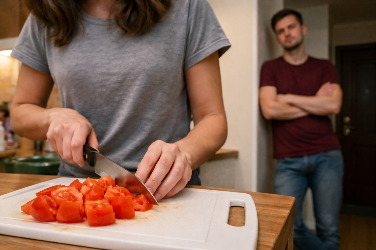 Вадим стоял прислонившись к косяку. Руки скрещены на груди. Смотрел с таким брезгливым прищуром, будто я не салат резала, а копалась в помойке.