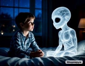 Однажды ночью, когда Лёша уже засыпал, в комнате стало светло. Не от лампы - от воздуха. Посередине комнаты, там, где секунду назад было пусто, появился ОН.