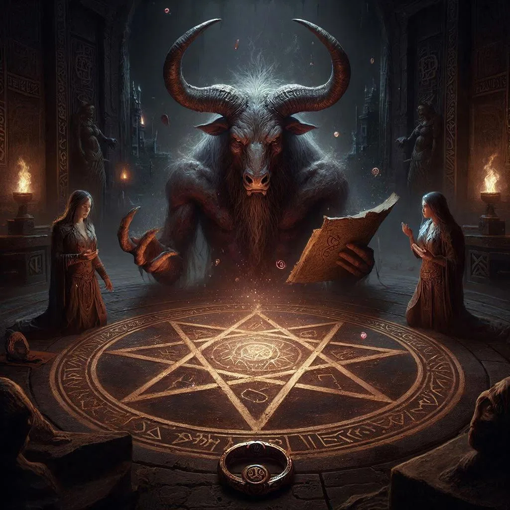 В воздухе начал проявляться силуэт. Это был седой, старый, невероятно больной демон. Он был похож на ту статую, что мы нашли в башне, но лишь очень отдалённо. Тот был воплощением силы и мощи. Этот же был тенью, призраком, измождённым и слабым. Его бычья голова была опущена, а мощные рога казались теперь непосильной ношей. В его глазах не было блеска жизни, лишь тусклое свечение угасающего огня.