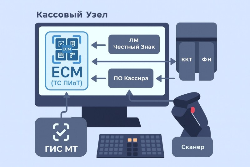 Честный Знак. Если вы НЕ работаете с маркировкой — внедрение не требуется. ТС ПИоТ — это дополнительный уровень проверки кодов маркировки перед продажей товара на кассе. Схема работы теперь выглядит так: 1С → ТС ПИоТ → касса → Честный знак Модуль устанавливается между товароучётной системой и кассой и: Если код некорректный — чек просто не пробьётся.