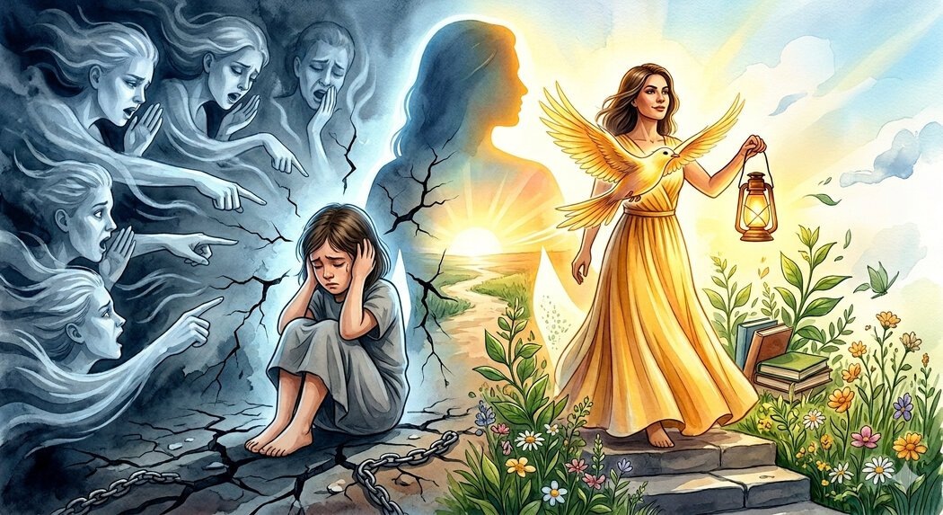 Ты думаешь, что это надо просто побороть в себе “плохие качества”, избавиться от неугодных эмоций и забыть негативный опыт. А на самом деле единственный путь освободиться — это пройти через эту боль и стать свободной. Выбрать новое отношение к прошлому, к тому, кто причинил боль. Кто встроил тебе установки, что твое мнение не значимо, что ты не имеешь права голоса, что ты ничего не знаешь и вообще никто.