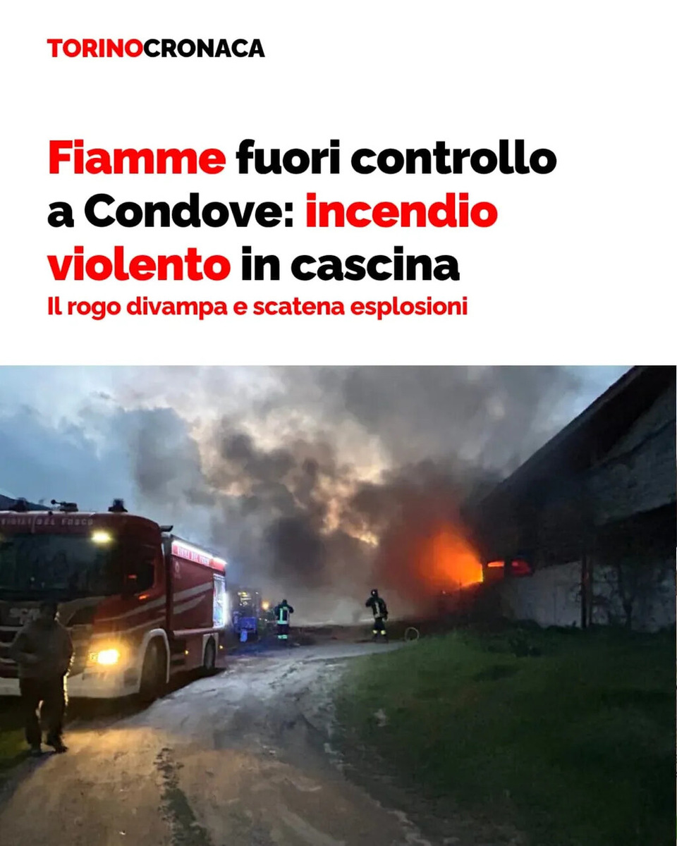 ✅ СПРАВКА: Эта новость переведена и размещена при помощи искусственного интеллекта Chat GPT без участия человека, в случае если вы заметили ошибку, или новость не соответствует реальному событию — сигнализируйте, исправим. 👉 Искренне Ваш Сержио Боттичелли: https://www.facebook.com/mercator.cz __________________ Страх в поздний вечер 25 марта в Кондове, в долине Суза, где сильный пожар охватил фермерское хозяйство вдоль улицы Монченисио. Пламя, подогреваемое ветром, быстро распространилось, образуя густую колонну дыма, видимую на расстоянии, и вызвав несколько взрывов из-за газовых баллонов и канистр с бензином. К счастью, внутри не было людей и животных. На место происшествия прибыли пожарные из подразделений Сусы, Боргоне и Буссолено, которые работали в течение нескольких часов до обеспечения безопасности района. В настоящее время проводятся проверки причин: среди версий рассматривается возможное короткое замыкание, но не исключены и другие варианты. 🔔 Рим новости — https://it.