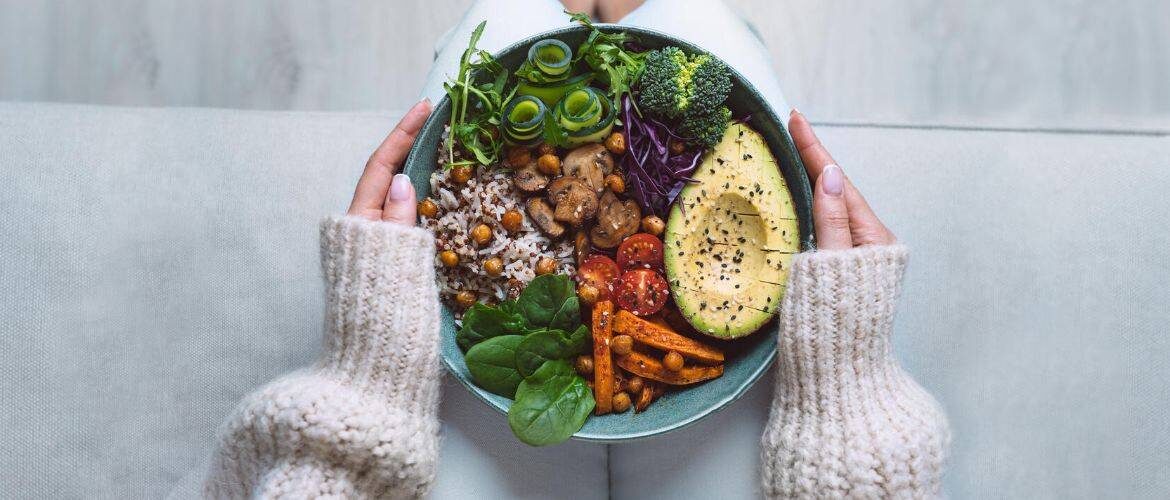Большую часть должны занимать овощи (чем разнообразнее цвета, тем лучше). Важное уточнение: картофель и картофель фри не считаются овощами в этой системе из-за их высокого влияния на сахар в крови. Фрукты также входят в эту половину, но в чуть меньшем объеме, чем овощи.
