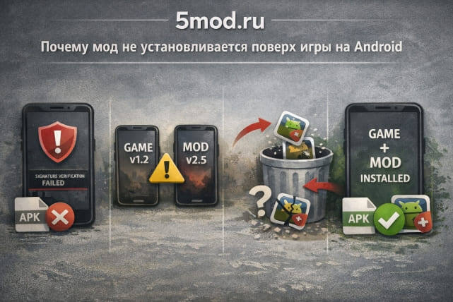 Многие пользователи Android хотя бы раз пытались установить модифицированную версию игры поверх уже установленной. Однако в большинстве случаев это заканчивается ошибкой. Давайте разберемся, почему так происходит. Каждое приложение на Android подписывается цифровым ключом разработчика. Это своего рода защита, которая гарантирует, что приложение не было изменено. Моды, как правило, перепаковываются и подписываются другим ключом. В результате система видит два разных приложения, даже если название одинаковое. Поэтому установка поверх становится невозможной. Еще одна частая причина — различие версий. Мод может быть сделан под определенную версию игры. Если у вас установлена другая, система не позволит заменить файлы. Даже после удаления игры могут остаться файлы в системе. Они иногда мешают корректной установке мода. Android специально блокирует подобные установки для защиты пользователя. Это снижает риск вредоносных изменений и взломов. 👉 Подробнее об этом можно узнать здесь: https://5m