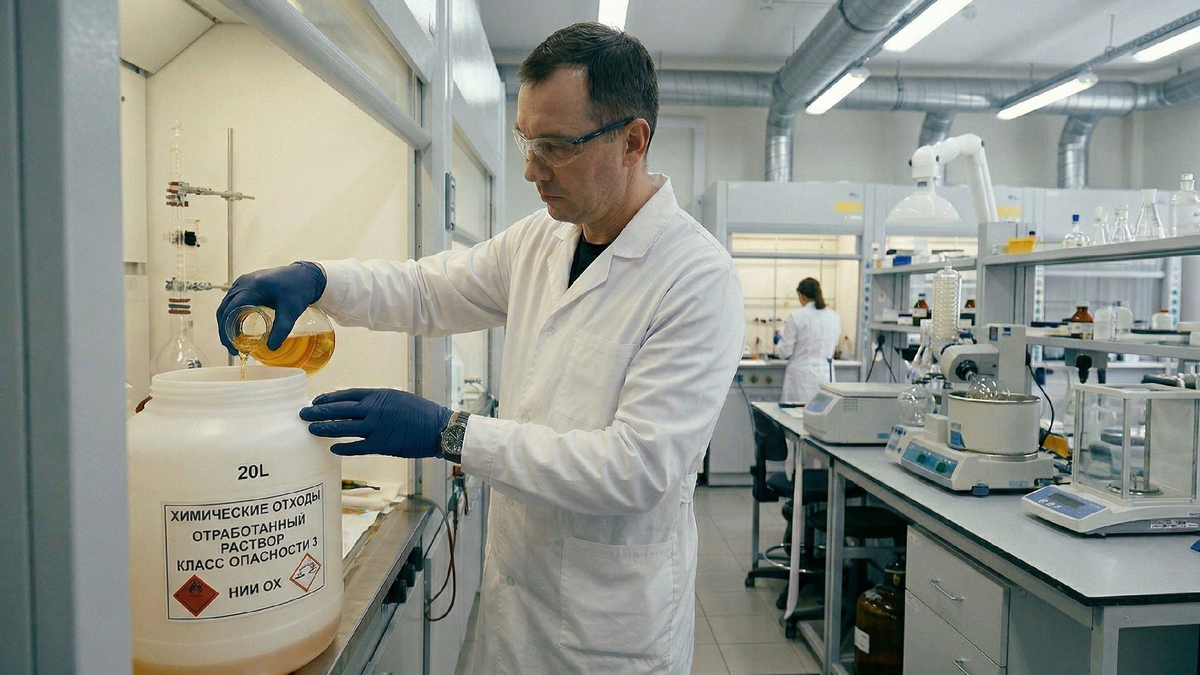 На прошлой неделе меня спросили: «А куда вы деваете всё, что остаётся после опытов? В раковину сливаете?» Я чуть пивом не подавился. Потом подумал и понял, что вопрос-то нормальный. Большинство людей представляют лабораторию так: колбы, пробирки, что-то булькает. А что происходит после эксперимента, когда в колбе осталось не то, что нужно, об этом как-то никто не задумывается.