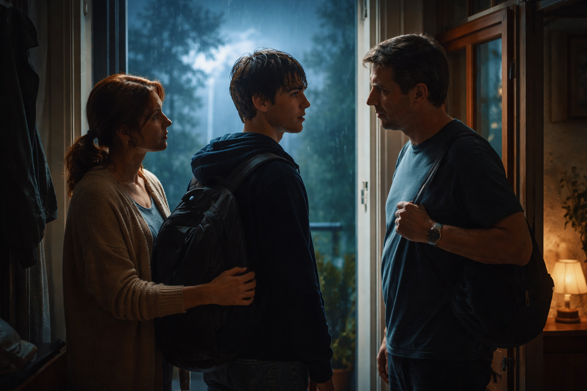 Даня вошёл мокрый до нитки, с волос на лоб стекала вода, рукава чёрной толстовки прилипли к запястьям. Он остановился на пороге комнаты, увидел открытый буфет, письма, ключ на ковре и сразу всё понял не до конца, но достаточно, чтобы лицо стало взрослым.