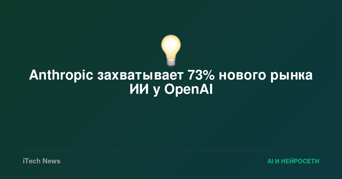 Anthropic захватывает 73% нового рынка ИИ у OpenAI