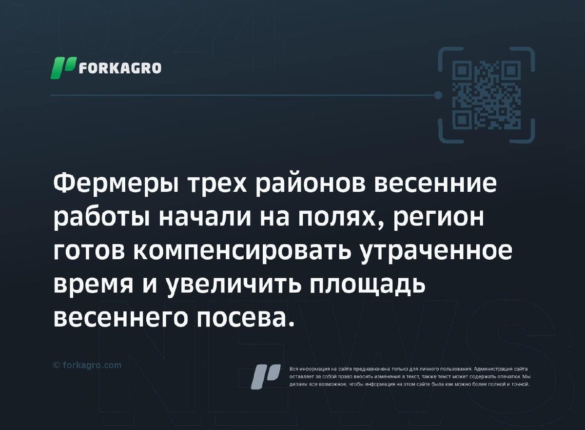 Фермеры трех районов весенние работы начали на полях, регион готов компенсировать утраченное время и увеличить площадь весеннего посева