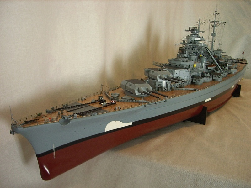 представляю на обозрение свое 3.5годовое творение.в галерее есть уже такая модель и ее описание. да и врят ли кто не знает историю этого корабля.так что писать об этои думаю много не стоит но немношко о сборке скажу.когда был куплен первый номер я и недумал на сколько этот кропотливый труд затянеться...хотелось собрать все и сразу...но и 3.5 года тоже пролетели быстрее чем я мог подумать.окрас коробля я выбрал самый доступный для меня...краски использовал по журналу т. е. "рал".т.к. корпус коробля деревянный его надо было много шпаклевать чтобы в дальнейшем он выглядел металлическим.в инструкции упоменалась о порозаполняющей шпаклевки, но я такой не нашел, скорее всего ее в природе несуществует.в магазине моделистов мне предложили материал типа фальги за 800у.е.!!!!мативируя тем что дерево никогда не будет похоже на металл.я сделал "чуть" дешевле, купил акриловую шпаклевку по дереву (20р.) и автомобильную армирующую грунтовку.т.к. корпус корабля обшит двумя слоями липовых реечек шириной 0.5см он постоянно давал трещены.это самый капризный элемент сборки.еще пришлось повозиться с" перилами"- леерами и такелажем.в остальном надсройки из дерева , травленки, пластмассы собирались легко. Красил модель выше упомянутыми красками "РАЛ":7000, 7001,7024 закеченные в баллоны из за не имения аэрографа.еще акрил от "звезды." белая и черная эмали - самая ужасная краска из балончика!лак на палубе к сожалению глянцевый....надо конечно было матовый.