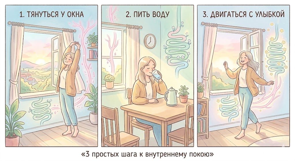 Пусть утро начнётся не с забот, а с тишины и пары глубоких вдохов у открытого окна. 2. Вода вместо спешки: