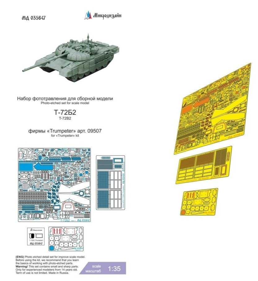 "Микродизайн" из Севастополя выпустила фототравление для деталировки модели Т-72Б2 в масштабе 1/35 от Trumpeter: