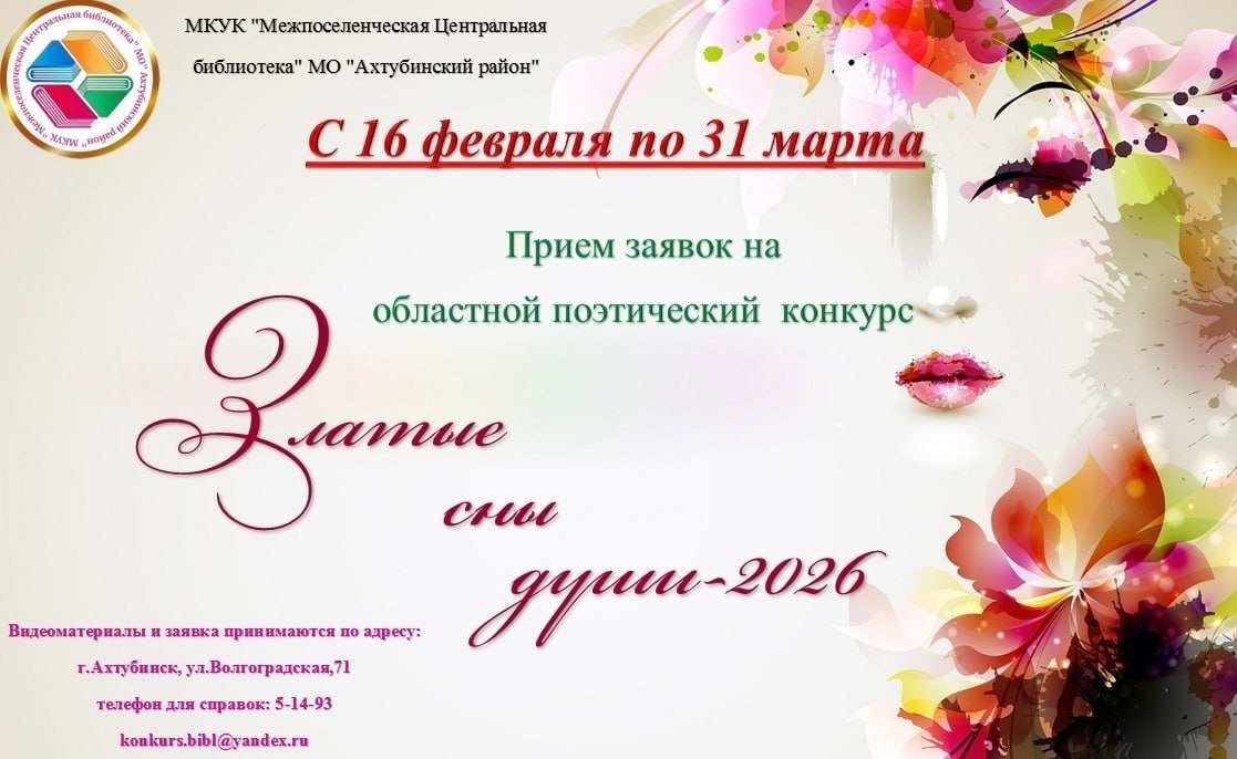 Подробнее на нашем сайте : https://centrlib.ru/priem-zayavok-na-konkurs-zlatye-sny-2026g/html 👉 Оставайтесь в курсе событий! 🟣 «Мой Ахтубинск» в МАХ 🔵 «Мой Ахтубинск» в ВК