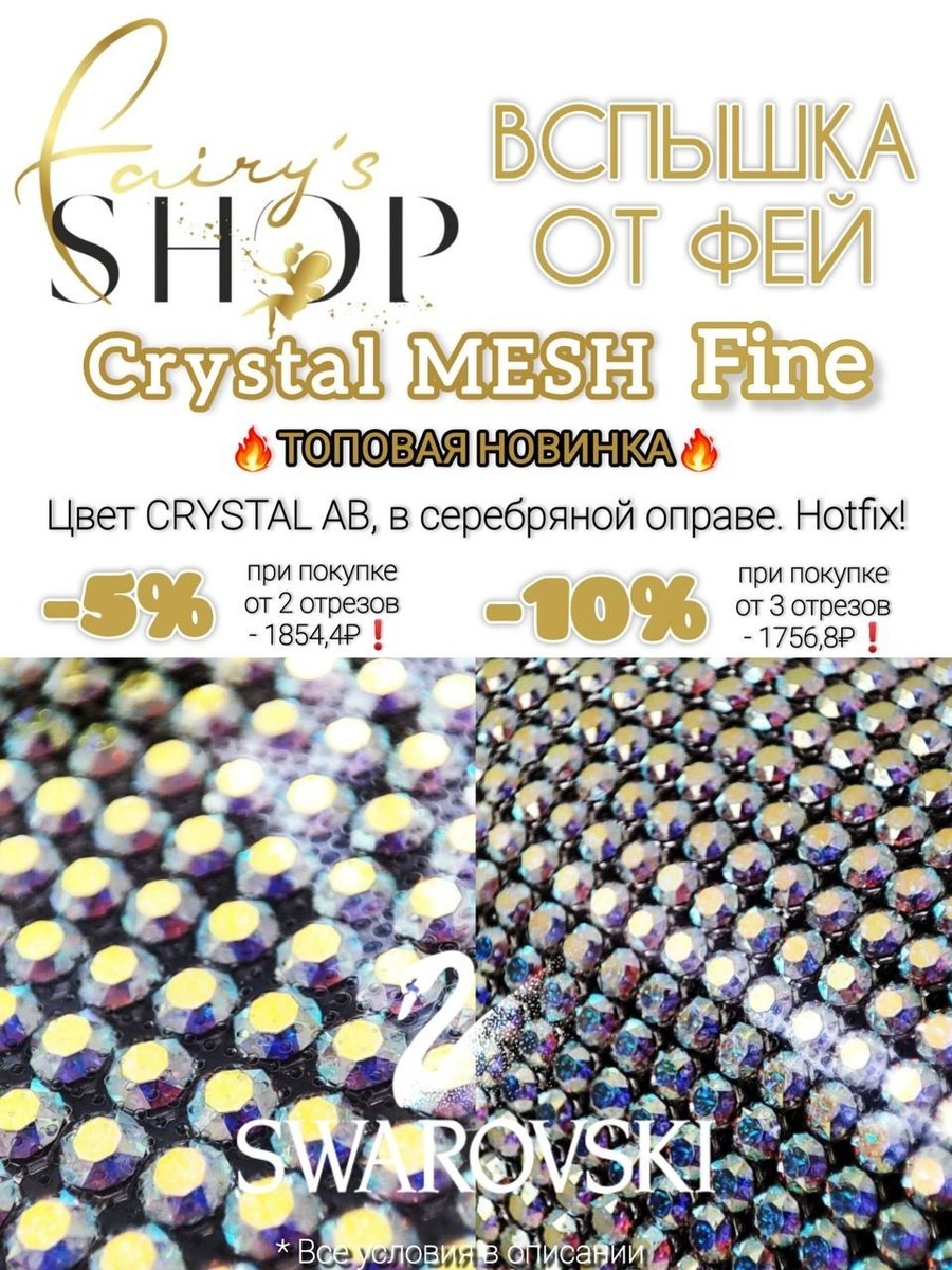 !!!✨✨✨ 💥🌟ВСПЫШКА ОТ ФЕЙ!🌟💥 Волшебницы, в эфире самая неожиданная и невероятная рубрика, где мы предлагаем Вам супер-товар по супер-цене!🤩 Ловите, всеми желанный и нужный всем и всегда ⚜️Crystal Fine MESH Swarovski⚜️ 💥Абсолютно ТОПОВАЯ НОВИНКА💥 🩵Цвет: CRYSTAL AB в серебряной оправе (Hotfix) Размер отреза 22x13 кристаллов (в отрезе 286 кристаллов). Размер одного кристалла PP9 (1,5-1,6 мм). Размер отреза - 3,8х2,2 см. Цена без скидки 1952₽ за 1 отрез. ⭐ -5% при покупке от 2 отрезов - 1854,4₽❗️ ⭐️ -10% при покупке от 3 отрезов - 1756,8₽❗️ Остаток - 56 отрезов. Поступление - апрель/май! ⏰Вкусные цены действуют только 3 дня: 27, 28, 29 марта. Потом продолжим принимать заказы, но уже по обычной цене, не зависимо от количества. 🛍️Заказать: 👉Телеграм Вступить: https://t.me/+Um6tdPVjG5liMGFi Закупка начинается здесь: https://t.me/c/1719736837/95402 👉ВК: https://vk.ru/FairySHOPretail ⚡Обращаем ваше ВНИМАНИЕ, что у нас самый большой выбор Crystal Mesh из наличия❤️🔥 🔥