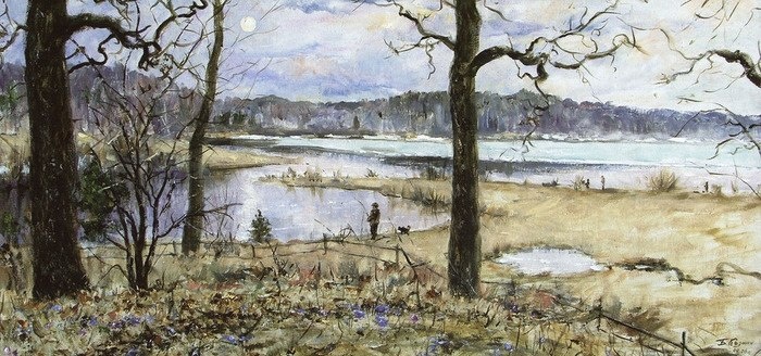 🌦 Висел он, не качаясь, На узком ремешке. Свалившаяся шляпа Чернела на песке. В ладонь впивались ногти На стиснутой руке. А солнце восходило, Стремя к полудню бег, И, перед этим солнцем Не опуская век, Был высоко приподнят На воздух человек. И зорко, зорко, зорко Смотрел он на восток. Внизу столпились люди В притихнувший кружок. И был почти невидим Тот узкий ремешок. #ВладиславХодасевич 🖼 #БорисКозмин. За околицей Петровского. Март. 2006. & #РусскаяПоэзия & #Живопись & #РусскаяЖивопись & #УтроМарт .......Никакого селения кругом не видно....