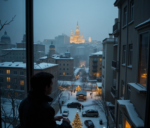 Декабрь в этом году выдался снежным и каким-то особенно тёмным — будто кто-то выкрутил яркость на городском пейзаже до минимума, оставив лишь контуры зданий и редкие пятна окон, в которых мерцали новогодние огни. Я сидел на подоконнике в своей однокомнатной квартире на седьмом этаже, прижавшись лбом к холодному стеклу, и смотрел на двор внизу. Там, между панельных домов, суетились фигурки людей — они несли ёлки, пакеты с подарками, вели детей за руки. Обычная предновогодняя суета, которая обычно вызывала во мне что-то тёплое и щемящее, но сегодня почему-то оставляла равнодушным. Возможно, потому что мне было сорок два, и я в очередной раз встречал Новый год один. Не то чтобы это меня угнетало — я уже привык к такому положению вещей, смирился, что ли. Но всё равно что-то щёлкало где-то внутри, какая-то тихая пружинка, каждый раз, когда я видел семьи на улице.