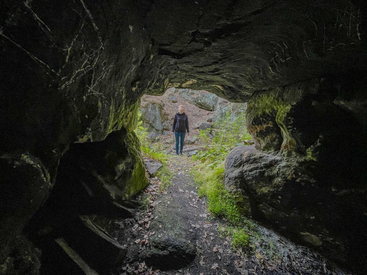 🏭🌿 Всего в получасе езды от центра мегаполиса можно провалиться в другую эпоху. Посёлок Медный встретит вас бараками торфяников и тишиной, а на его окраине спрятался настоящий портал в XVIII век. Это Шиловский рудник. Именно отсюда больше 300 лет назад, ещё до основания Екатеринбурга, брали руду для первых уральских заводов. Представляете? Пётр I ещё только задумывался о нашем городе, а здесь уже кипела работа. И даже Демидовы с Татищевым чуть не подрались из-за этого места — уж больно руда была богатая (до 60% меди!). Сейчас это не просто яма в земле, а очень фотогеничный арт-объект, созданный природой и историей. Что смотреть: 🇧🇼🏞️ Главный карьер — небольшой, но с характером. Глубина метров 10, стены отвесные, а в одной из них ветер и вода прорубили сквозную арку. Смотришь на свет сквозь неё — и кажется, что это врата в параллельный Урал. 🇧🇼🕳️ Старые штреки — можно залезть в нижний ход (метров 5–7, дальше завал) и почувствовать себя старателем. Только без фанатизма, техни