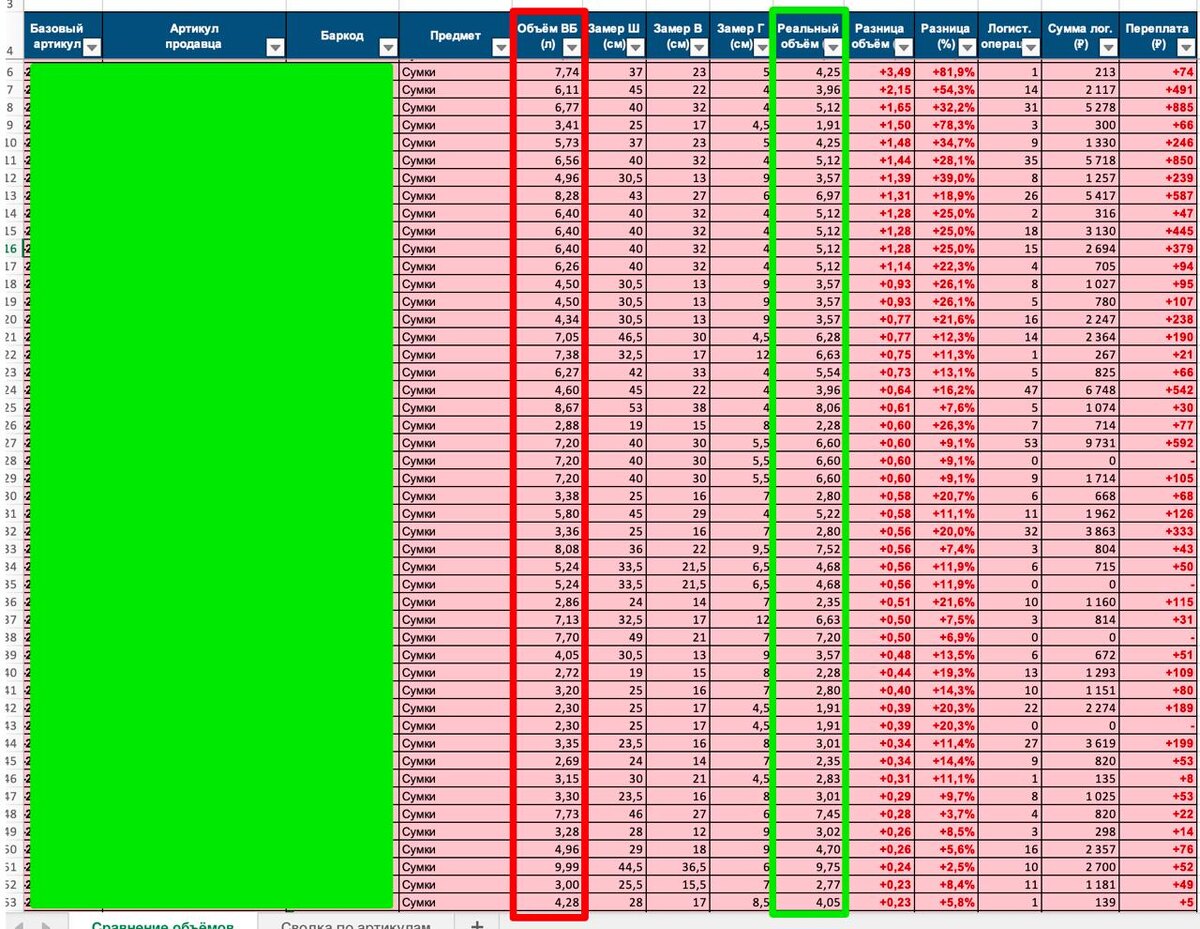Wildberries может считать логистику по завышенным объёмам товаров, и вы об этом даже не узнаете. Проверка показала, что по большинству артикулов объёмы в отчёте ВБ выше реальных габаритов. Почему это важно: • Прямые финансовые потери: вы переплачиваете за логистику из-за несоответствия габаритов в карточке товара и в отчёте ВБ. • Скрытые изменения: ВБ проводит перезамеры и меняет объёмы в системе без уведомления селлеров. • Необходимость контроля: без регулярной проверки расходы на логистику становятся непредсказуемыми. Гипотезы: • Возможно, ВБ намеренно завышает объёмы, чтобы увеличить доходы от логистических услуг. • Или в системе перезамеров есть ошибки, приводящие к несоответствиям в данных. • Заниженные объёмы для некоторых артикулов могут быть случайными, но это исключение. Что делать селлеру: • Сравните габариты в карточке товара и в «Отчёте с перечнем номенклатур» для всех артикулов. • При обнаружении расхождений обратитесь в поддержку ВБ для уточнения расчётов логистики. • Вед