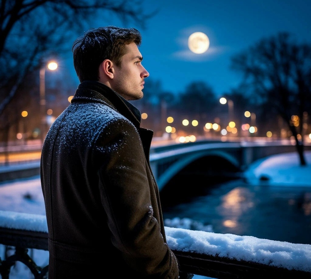 Дмитрий стоял на мосту, подняв воротник пальто, и курил. Метель, бушевавшая до этого, утихла, и воцарилась тишина.