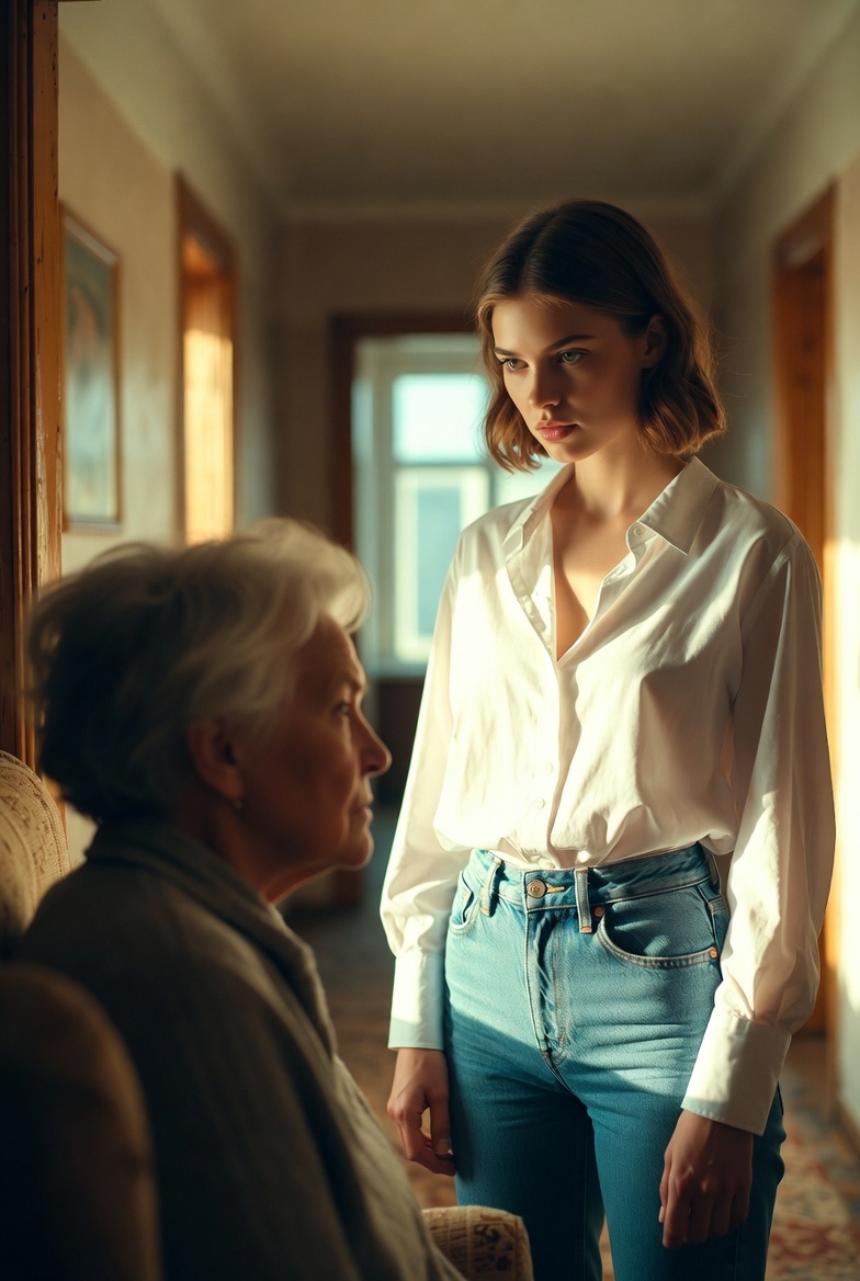 Она стояла посреди коридора с пакетом из магазина в руке. Внутри — обычные джинсы и простая белая блузка. Ничего особенного. Просто одежда.