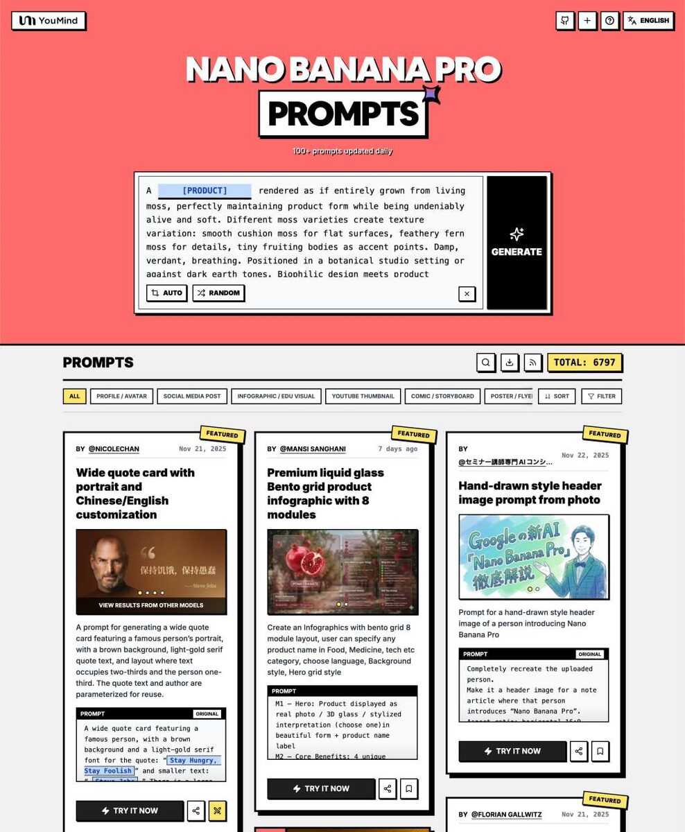 Внутри — 10 000+ готовых подсказок с превью картинок и поддержкой 16 языков. Это уже не просто папка с промптами, а целая библиотека, где можно подсмотреть идеи, взять готовые формулировки и быстрее выбить нормальный результат. Что особенно приятно: — работает с генерацией изображений через Google Gemini AI; — все это бесплатно; — и еще с открытым исходным кодом. 👀 Она прямо здесь. Поддержите реакцией и покажите друзьям, вдруг им тоже зайдет 🫶 😎 КиберПоток / Навигация #промпт #nanobanana