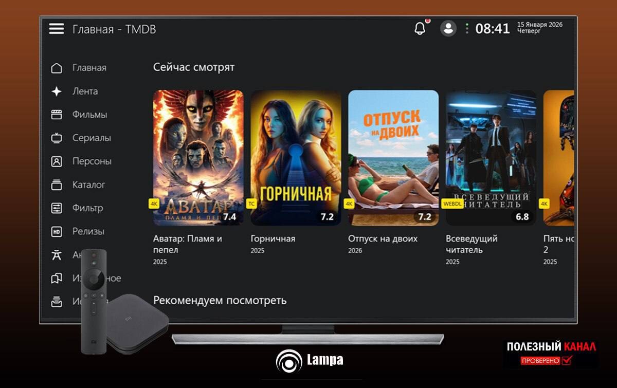 🍿 Lampa (V 1.12.4) Бесплатная медиатеку, осуществляет поиск контента на торрентах. Работает в связке с TorrServe. Подключение различных плагинов 🆕 HD плагин ⚙️ Настройки ➡️ Расширения ➡️ Добавить плагин ➡️ Вставить ссылку: http://premium-iptv.ru:8080/free.js Перезагрузить приложение Все о LAMPA 💡 ⬇️⬇️⬇️ Скачать 😀 Закреп | Фильмы | FAQ | Чат | Бот | Прокси