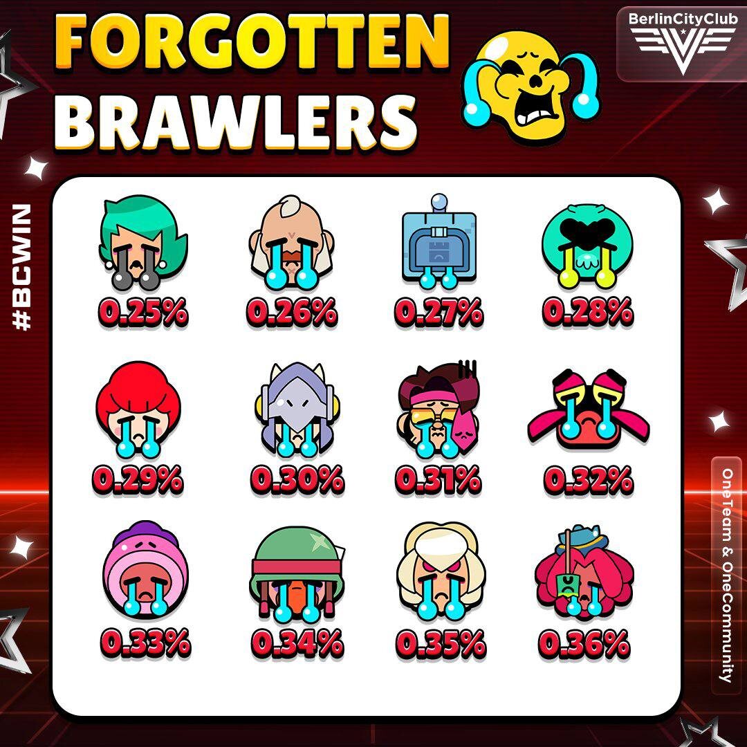 😄 Перед вами все забытие бравлеры: их процент выбора в катках невероятно мал