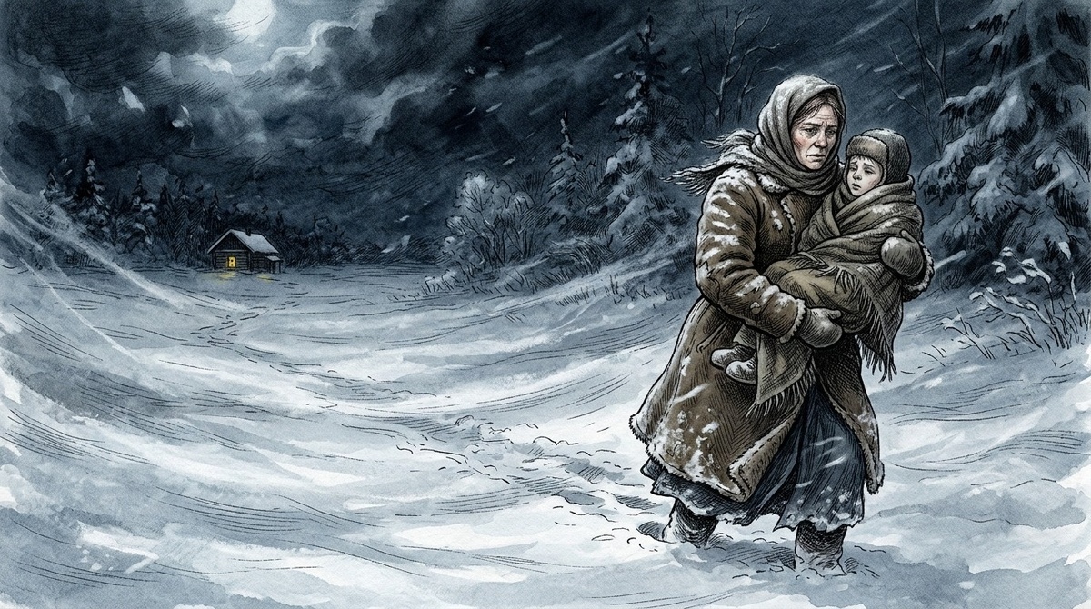 Сосед привёз на санях, так и взял обоих, Марью и Петю. Мальчик сидел закутанный в тулуп, смотрел на дорогу. Лицо бледное, но глаза уже живые.