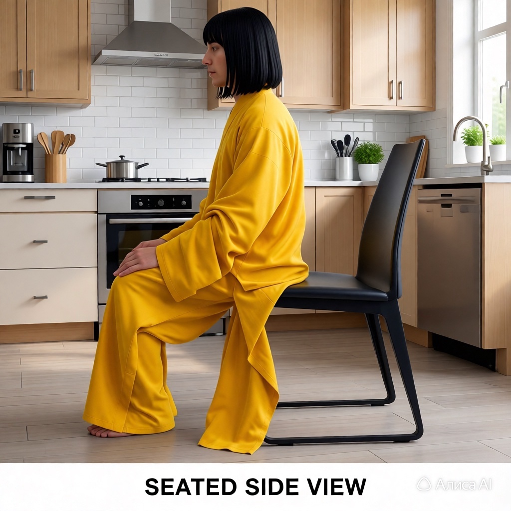 - На стуле — спина прямая, стопы на полу, колени под прямым углом.