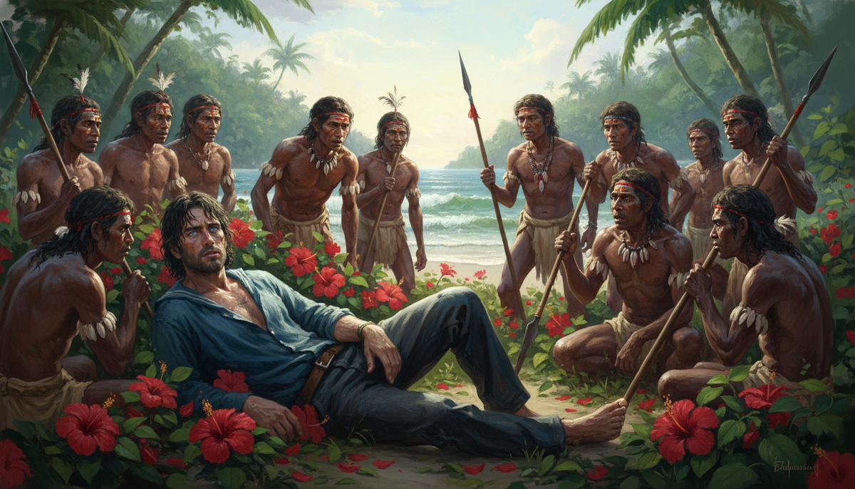 Когда Карл очнулся, он лежал в зарослях гибискуса на берегу крошечного острова Табар. Вокруг стояли люди — молчаливые, с копьями, очень внимательные.