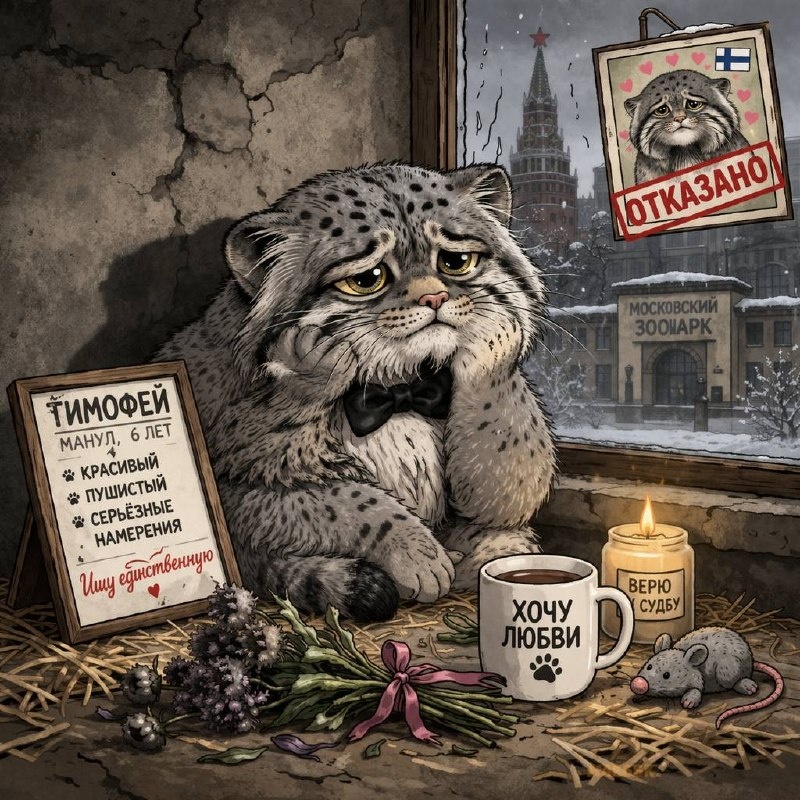 🇫🇮 Финский зоопарк Коркеасаари официально отказался выделить невесту манулу Тимофею из Москвы. Причина звучит почти как дипломатическая нота: “у нас есть только одна размножающаяся пара”. Перевод с зоопаркового на человеческий: • ресурсы ограничены • действующие соглашения уже заключены • расширение партнёрства в данный момент невозможнo Сам Тимофей, судя по всему, снова оказался в статусе: “переговоры продолжаются, но без конкретных результатов”. Особая ирония в том, что даже у манулов геополитика работает без сбоев: если у тебя уже есть стабильная пара — третьего лишнего не вписывают в коалицию. Впрочем, в заявлении оставили осторожный оптимизм: мол, надеемся, Тимофей найдёт себе самку. То есть, рынок открыт, но спрос пока не подтверждён. #InfoDefenseAuthor Всегда с вами 📱 Датчанка за углом 🩳 Дзен
