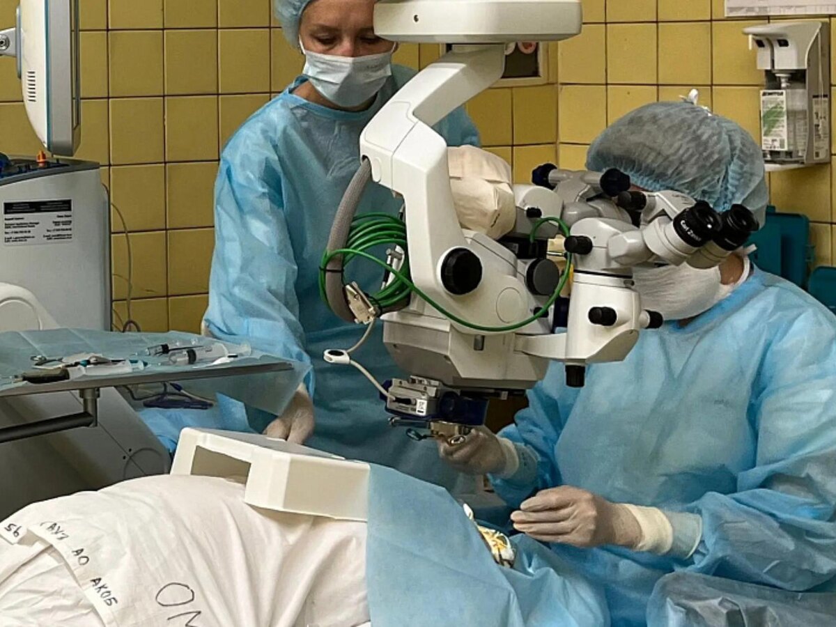 В Архангельскую клиническую офтальмологическую больницу поступил мужчина с глубоким проникающим ранением правого глаза, полученным на производстве Острота зрения составляла 0,01 и не поддавалась коррекции. На рентгенограмме в орбите обнаружили металлическую проволоку длиной 16 мм, частично выступавшую в переднюю камеру глаза. Врачи провели операцию в несколько этапов: удалили поврежденный хрусталик и заменили его искусственным, удалили стекловидное тело, извлекли инородное тело, запаяли поврежденные участки сетчатки лазером, а полость глаза заполнили силиконовым маслом. После первого этапа зрение улучшилось. Спустя месяц масло удалили через микроскопические проколы. Пациент выписан со значительным улучшением зрения. В областной офтальмологической больнице ежегодно выполняют около 300 сложных высокотехнологичных операций (при глаукоме, заболеваниях сетчатки, травматических катарактах), а также помогают детям с врожденными патологиями. В прошлом году в медучреждения Архангельска, Вельска