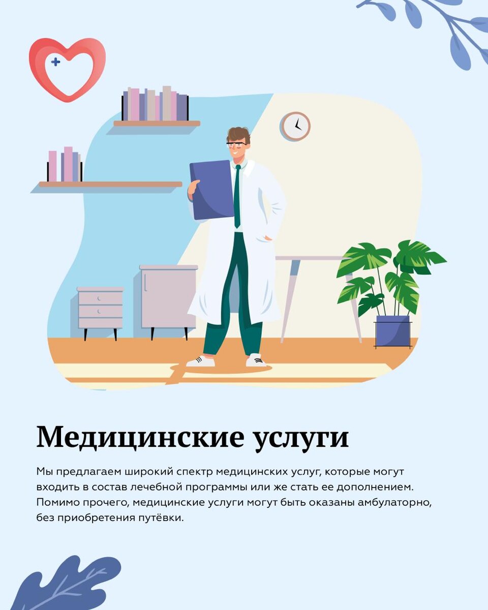ΠΎΠ΄ΠΈΡΡ Π² ΡΠΎΡΡΠ°Π² Π»Π΅ΡΠ΅Π±Π½ΠΎΠΉ ΠΏΡΠΎΠ³ΡΠ°ΠΌΠΌΡ ΠΈΠ»ΠΈ ΠΆΠ΅ ΡΡΠ°ΡΡ Π΅Π΅ Π΄ΠΎΠΏΠΎΠ»Π½Π΅Π½ΠΈΠ΅ΠΌ. ΠΠ»Ρ Π²Π°ΡΠ΅Π³ΠΎ ΡΠ΄ΠΎΠ±ΡΡΠ²Π° ΠΌΠ΅Π΄ΠΈΡΠΈΠ½ΡΠΊΠΈΠ΅ ΡΡΠ»ΡΠ³ΠΈ ΠΌΠΎΠ³ΡΡ Π±ΡΡΡ ΠΎΠΊΠ°Π·Π°Π½Ρ Π°ΠΌΠ±ΡΠ»Π°ΡΠΎΡΠ½ΠΎ, Π±Π΅Π· ΠΏΡΠΈΠΎΠ±ΡΠ΅ΡΠ΅Π½ΠΈΡ ΠΏΡΡΡΠ²ΠΊΠΈ. ΠΠΎΠ΄ΡΠΎΠ±Π½Π΅Π΅ ΡΠΌΠΎΡΡΠΈΡΠ΅ Π½Π° Π½Π°ΡΠΈΡ