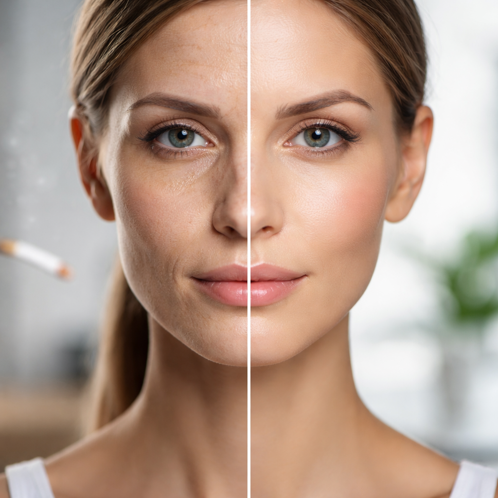 «Кожа курильщика» – это реальный термин, который используют врачи. По состоянию кожи действительно часто можно определить, курит человек или нет. И дело не в запахе или цвете зубов, а именно в качестве кожи. Курение ухудшает кровообращение, из-за этого кожа получает меньше кислорода и питательных веществ. В результате появляется тусклый, сероватый оттенок, кожа становится более сухой и тонкой, быстрее появляются морщины, особенно вокруг губ. Также ухудшается тонус кожи, она медленнее восстанавливается и заживает. Также никотин и продукты горения способствуют разрушению коллагена – белка, который отвечает за плотность и упругость кожи. Когда коллагена становится меньше, появляются заломы, лицо может выглядеть уставшим и более возрастным, чем есть на самом деле. Полностью убрать влияние курения можно только отказом от него, но значительно улучшить внешний вид кожи реально. В этом помогают: увлажняющий уход, процедуры на стимуляцию коллагена, пилинги для выравнивания цвета лица. При прави