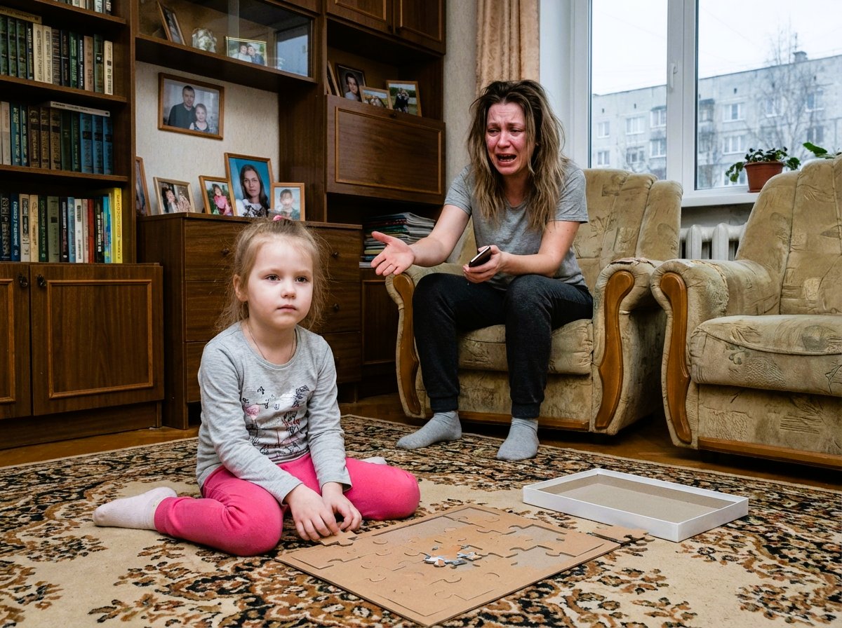 Пятилетняя Катя любила собирать пазлы. И принцесс. Сто деталей, двести — она могла сидеть над этой головоломкой подолгу, если никто не отвлекал. В тот вечер они с мамой собирали новый пазл — с принцессой в голубом платье. Катя сидела на ковре, сосредоточенно перебирала детали. Мама (Евгения) давала ей самостоятельно принимать решения, но иногда помогала найти необходимую деталь, когда дело было совсем уж трудно. Сегодня всё было как обычно. Катя улыбалась, находила нужный кусочек, прикладывала, радовалась. А потом вдруг на несколько секунд замерла. Мама не сразу это заметила. Дочь сидела, склонившись над пазлом, и вдруг — перестала двигаться. Рука с деталью замерла в воздухе. Глаза смотрели куда-то в пустоту, не моргая. Лицо было спокойным, но каким-то... каменным. — Катя? — позвала мама. Девочка не ответила. Секунда, две, три. Мама уже встала с кресла, чтобы подойти, но в этот момент Катя моргнула, будто очнулась, и продолжила искать нужное место для детали, как ни в чём не бывало. —